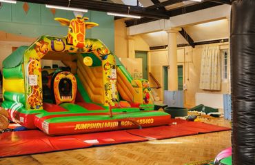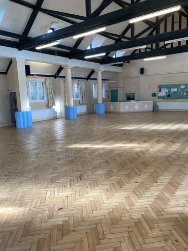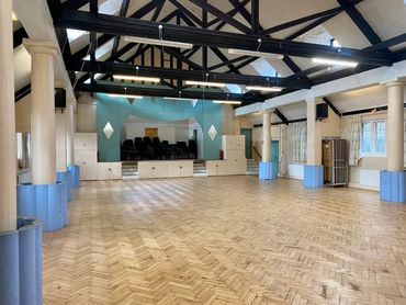 It is a single large Hall, with a capacity for 120 people, and has a small kitchen (with use of microwave, oven, gas cooker, large urn, kettle and fridge) toilets and access to an enclosed outside grassed space. The Hall is fully accessible and has an accessible toilet installed with baby changing facilities. There is limited space on the stage. There is Wi-Fi and limited off-street parking is available outside the hall, along with on street parking with no restrictions. The hall height is approx 13 feet, bouncy castles are permitted.